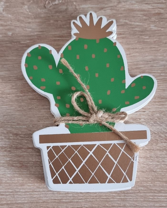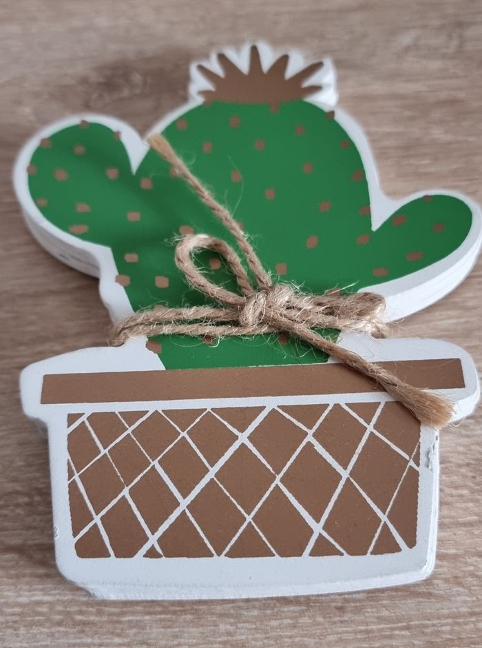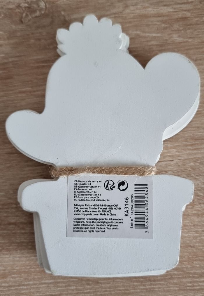 Quatre dessous de verre en forme de cactus, en bois. Jamais utilisés mais quelques traces d’usure sur les bords car ils étaient rangés avec de la vaisselle.