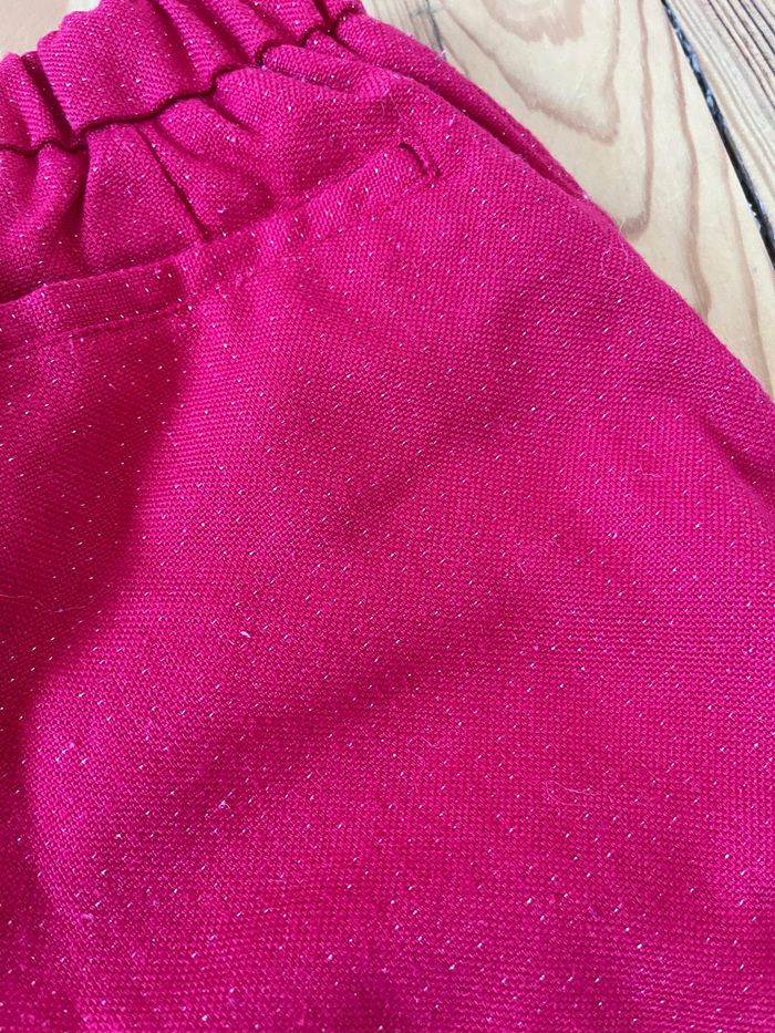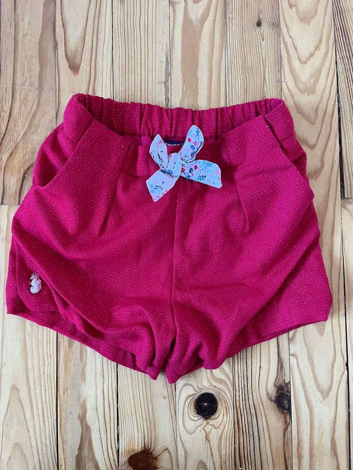 Short rouge-rose légèrement pailleté, doublé Coupe un peu bouffante devant Très bon état