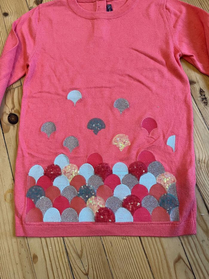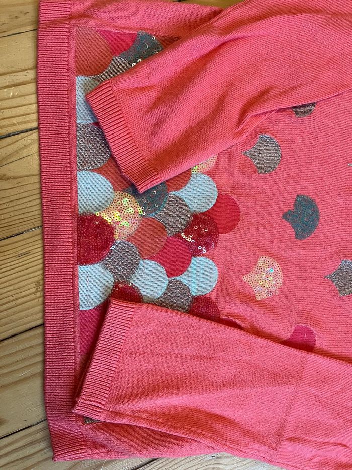 Pull corail avec broderies fantaisies Porté une fois, il est comme neuf