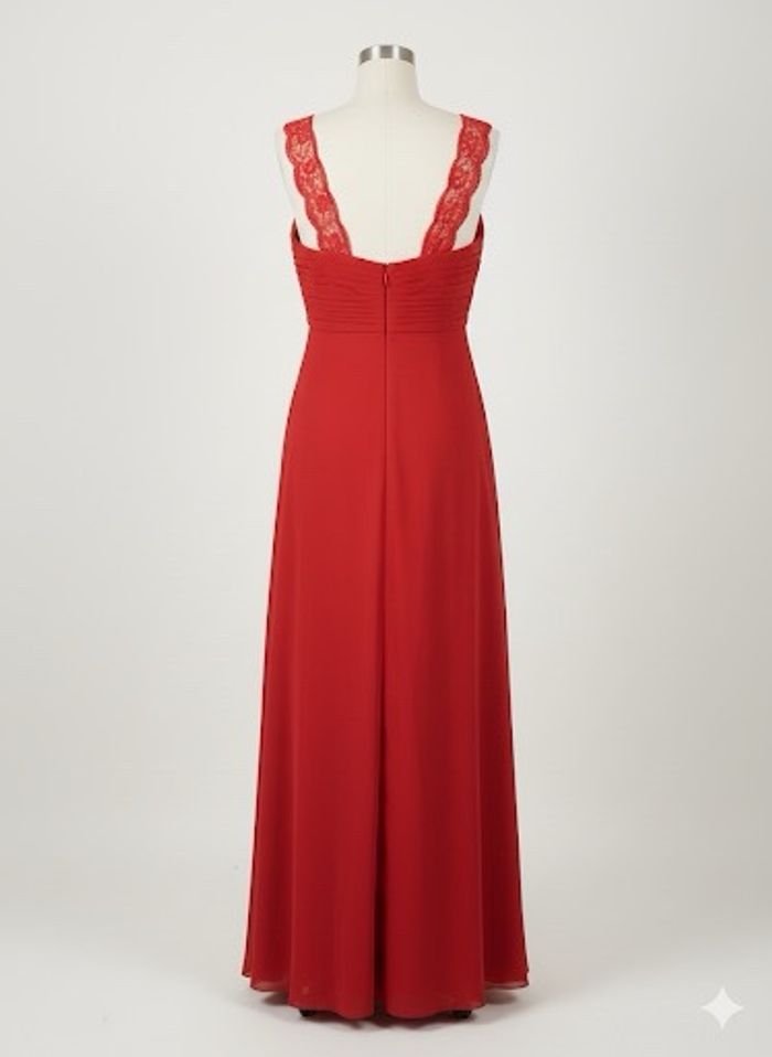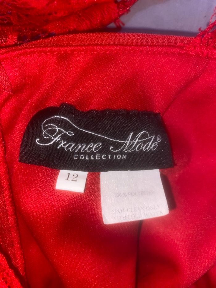 Robe longue rouge de la marque France Mode Collection, robe de créateur. Coupe fluide avec un buste plissé croisé. Les bretelles sont larges en dentelle. Tissu léger et agréable à porter, tombé fluide jusqu’aux chevilles. Très bon état, porté 1 seule fois.