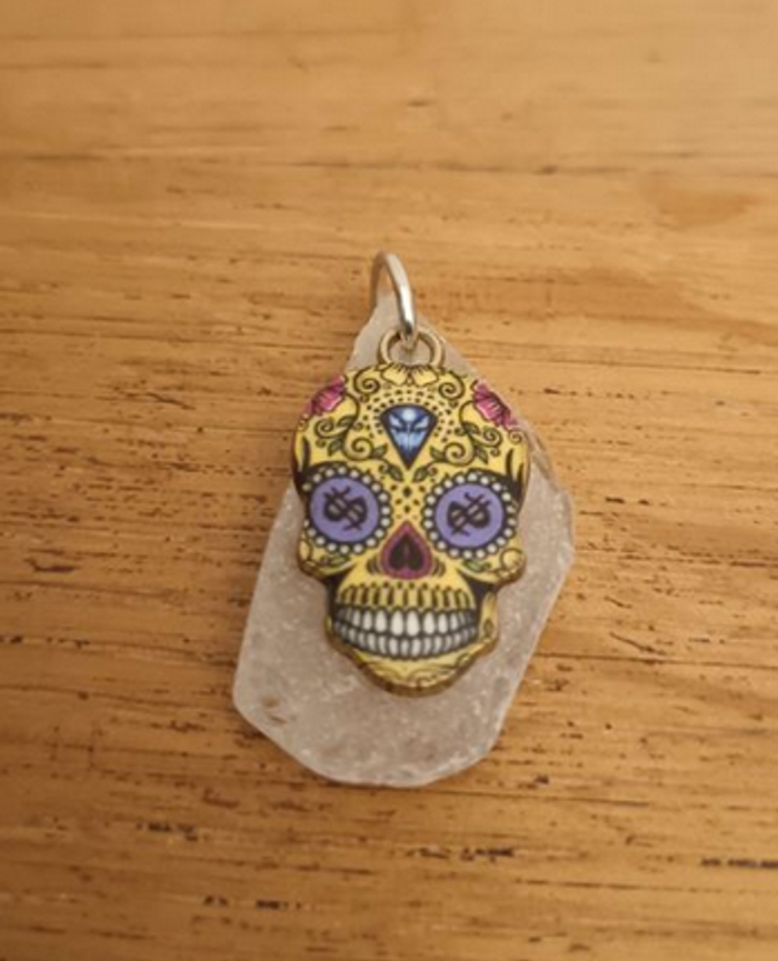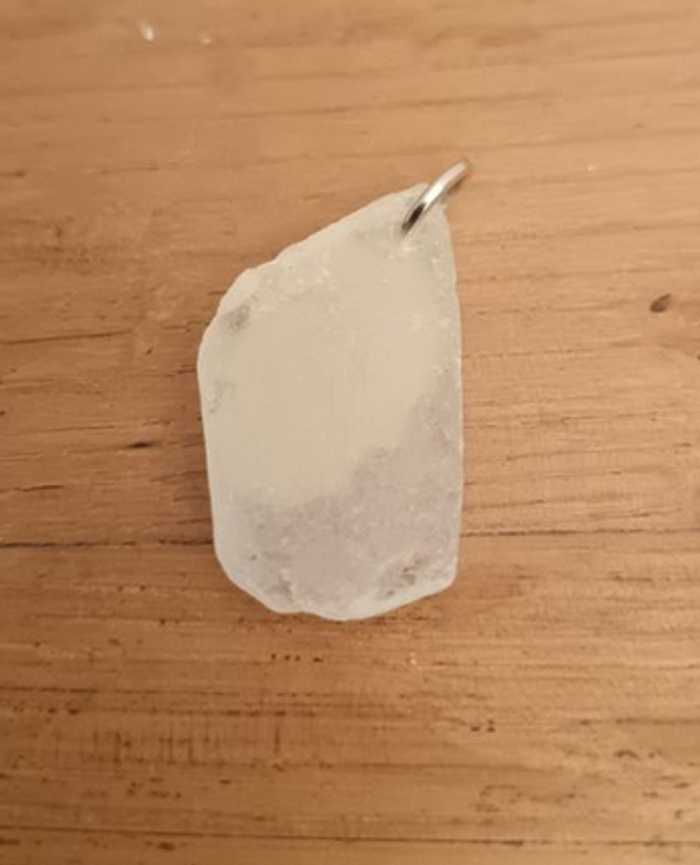Pendentif fabriqué avec un morceau de verre poli par la mer et une breloque calabera Hauteur 3cm Longueur 1,5cm