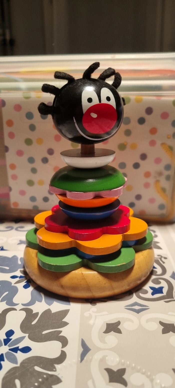 Bonjour 👋 Je propose ce jeu. Jeu d anneau à empiler. Différentes formes, tailles, ... Ludique... En bois. État satisfaisant