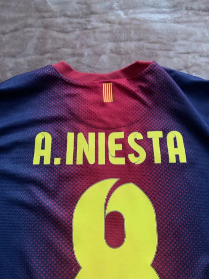 Vend tee shirt de football iniesta Barcelone En très bon état malgré une déchirure à l’avant, mais réparer proprement Marque et nom au dos en très bon état Taille M / authentique / marque Nike Envoie rapide et soigné