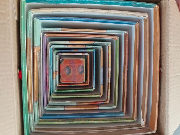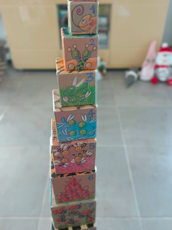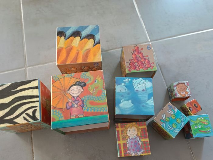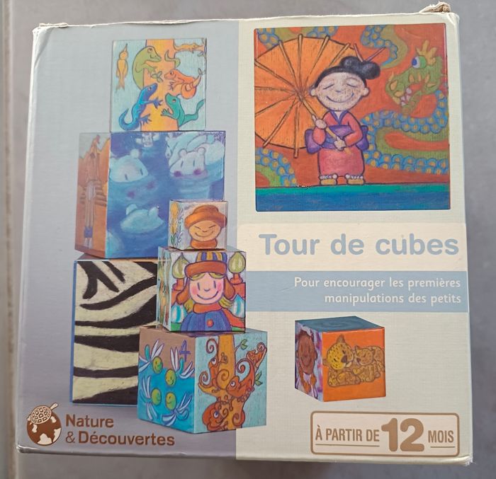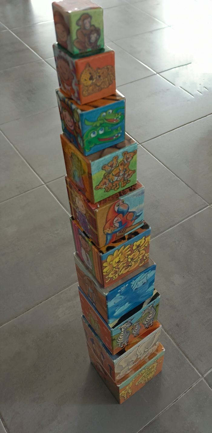 Du plus grand au plus petit, ces dix cubes gigognes en carton s'empilent pour former une pyramide dont chaque face propose un thème joliment illustré : chiffres, animaux sauvages, enfants du monde...