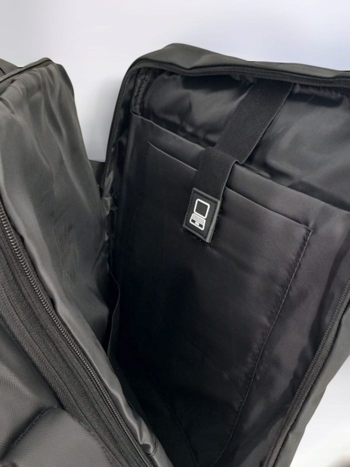 Sac à dos backpac k gris ou bagage à main pour Homme/Femme dispose de 3 grands compartiments dont un à ouverture totale (type valise), poche PC jusqu'à 18 pouces, sortie USB, multiples poches intérieures, sangles de compression latérales