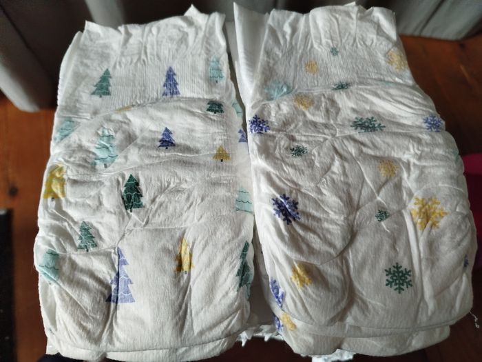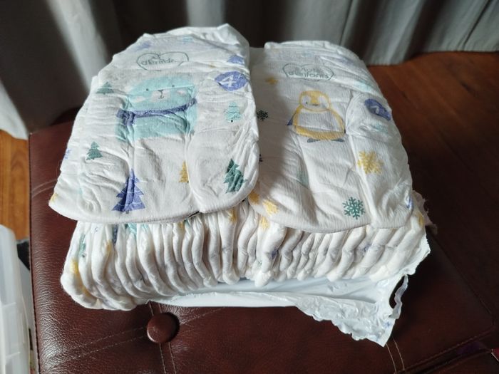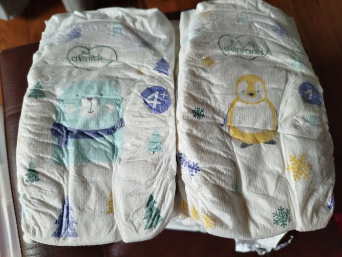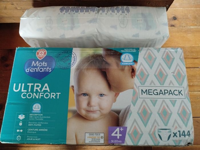 Taille 4+ 9/20 kg Il y a un carton complet plus d'autres couches d'un paquet entamé. Dans le carton, il y a un paquet non ouvert et le 2 ème a été ouvert en 2 pour ranger dans la table à langer mais au final pas eu d'utilité. Il y a donc 150 couches environ pour 15€ ce qui revient à 10 centimes la couche.