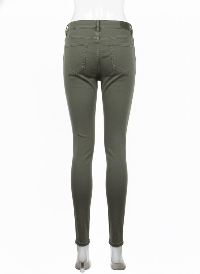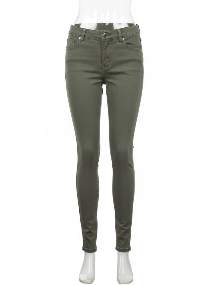 👖Pantalon slim coupe skinny de couleur kaki/vert olive, taille ajustée avec fermeture bouton et zip, passants pour ceinture et poches avant et arrière. Matière légèrement stretch offrant un bon confort, coupe près du corps.