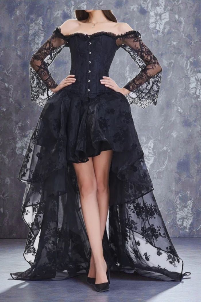 Incarnez la célèbre et sombre Bellatrix Lestrange avec cet ensemble corset punk/gothique inspiré de l’univers Harry Potter. Composé d’un bustier corset en dentelle aux épaules dénudées et d’une jupe basse assortie, cet ensemble est idéal pour Halloween, cosplay, soirées à thème ou conventions.