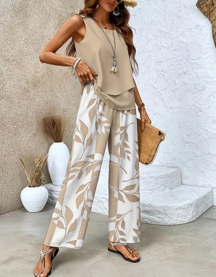 ✨ Ensemble Imprimé Femme – Haut Sans Manches & Pantalon Long ✨