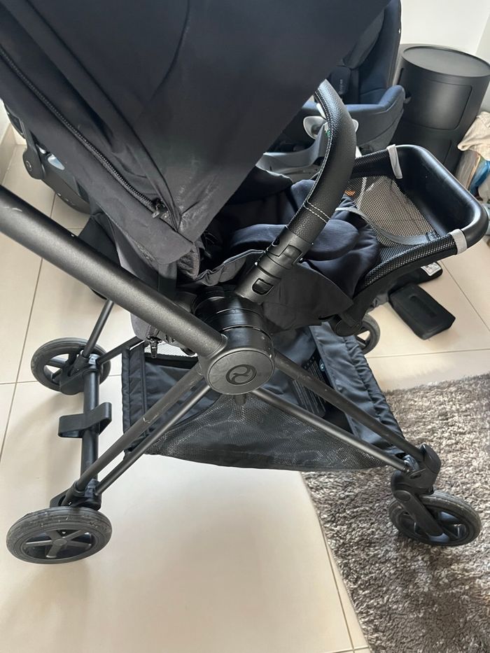 Je vends une poussette Cybex Mios Platinum, coloris Full Black, accompagnée de son cosy Cybex Cloud Z, le tout en très bon état.