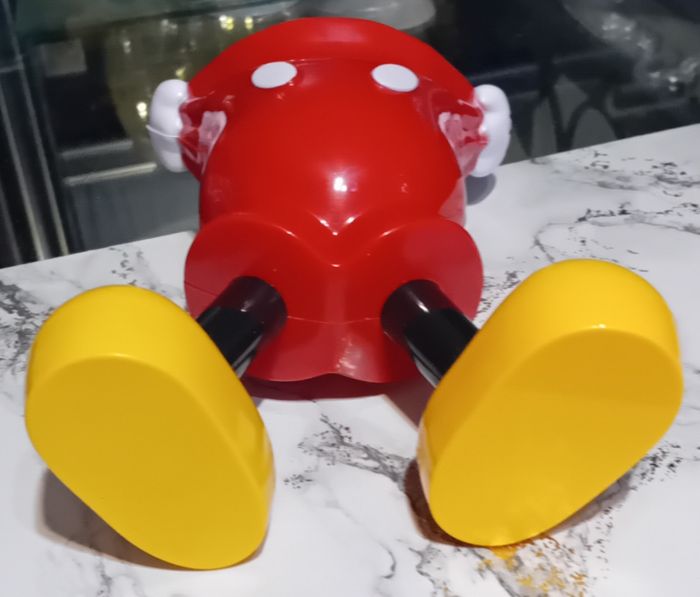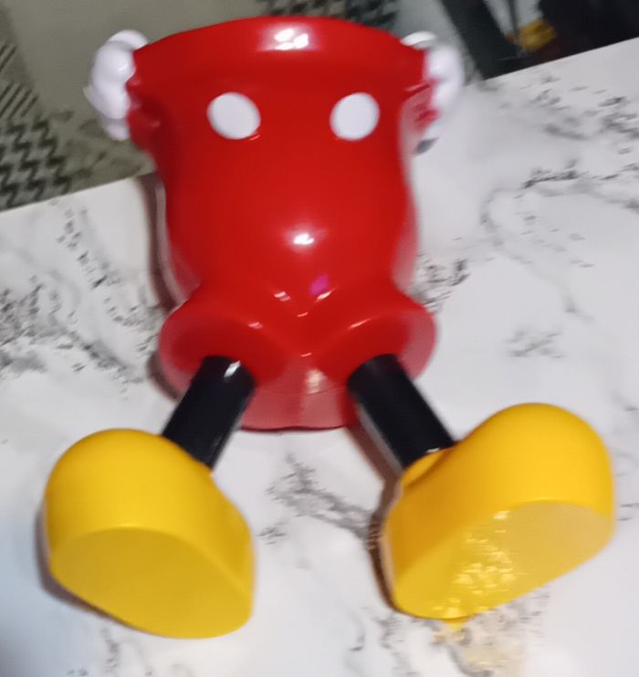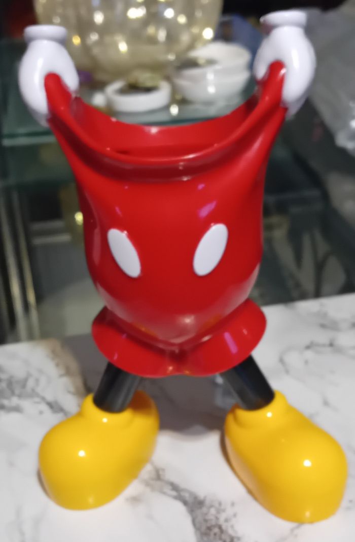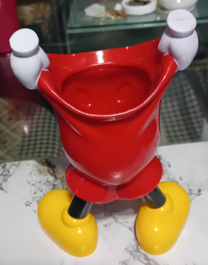 Décoration bibelot porte stylos/pinceaux de maquillage Disney short de Mickey en matière plastique de coloris rouge jaune blanc et noir Dimensions 18 cm de hauteur et 11,5 cm de largeur maximale environ