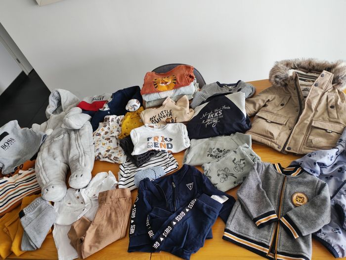 Je vends les vêtements de mon enfant taille 6 et 9 mois par pièce ou par lot. Contactez moi en MP pour plus des photos, détails, et prix si plusieurs articles. Les vêtements sont en très bon état, plusieurs marques ( guess, boss, tape à l'oeil, Kiabi, Disney.....), plusieurs vêtements ne sont pas dans la photo. Prix à partir de 1€.