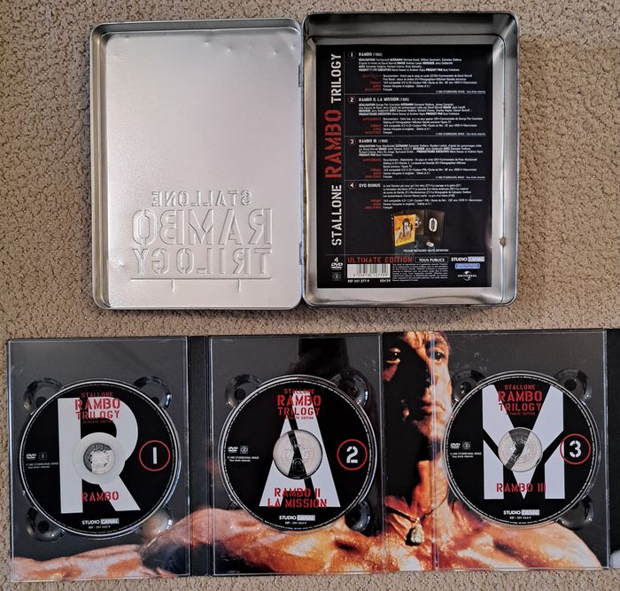 💿 DVD : Rambo Trilogy Ultimate Edition, coffret de 4 DVD en boite steelbook avec médaille