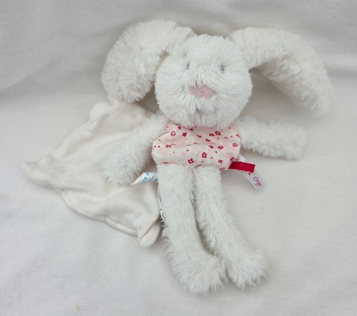 Doudou Lapin Cajou blanc et fleuri avec mouchoir- Sucre d'orge