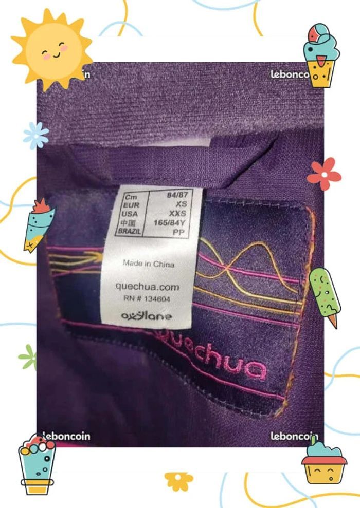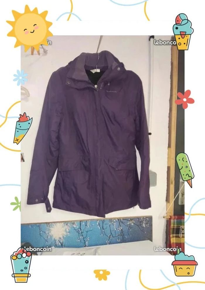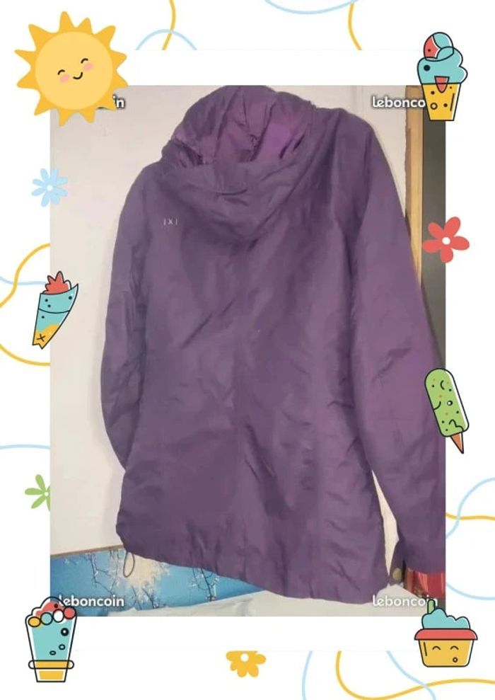Manteau Blouson à capuche violet quechua violet taille XS 34 avec 1 poche intérieure zippée idéal pour le ski ou la randonnée.