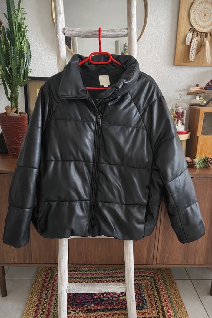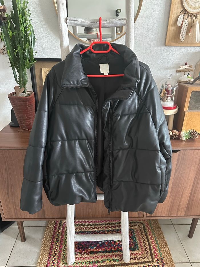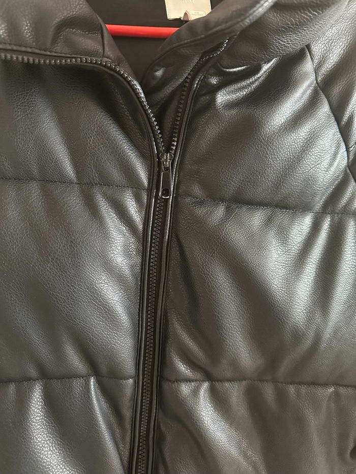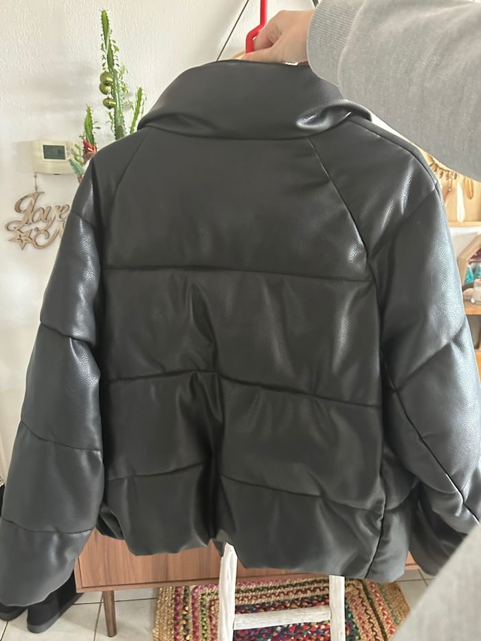 Très jolie doudoune noire à l’effet cuir moderne et élégant. Coupe confortable, bien matelassée, idéale pour affronter le froid tout en restant stylée. Facile à associer avec toutes vos tenues, du quotidien aux sorties.