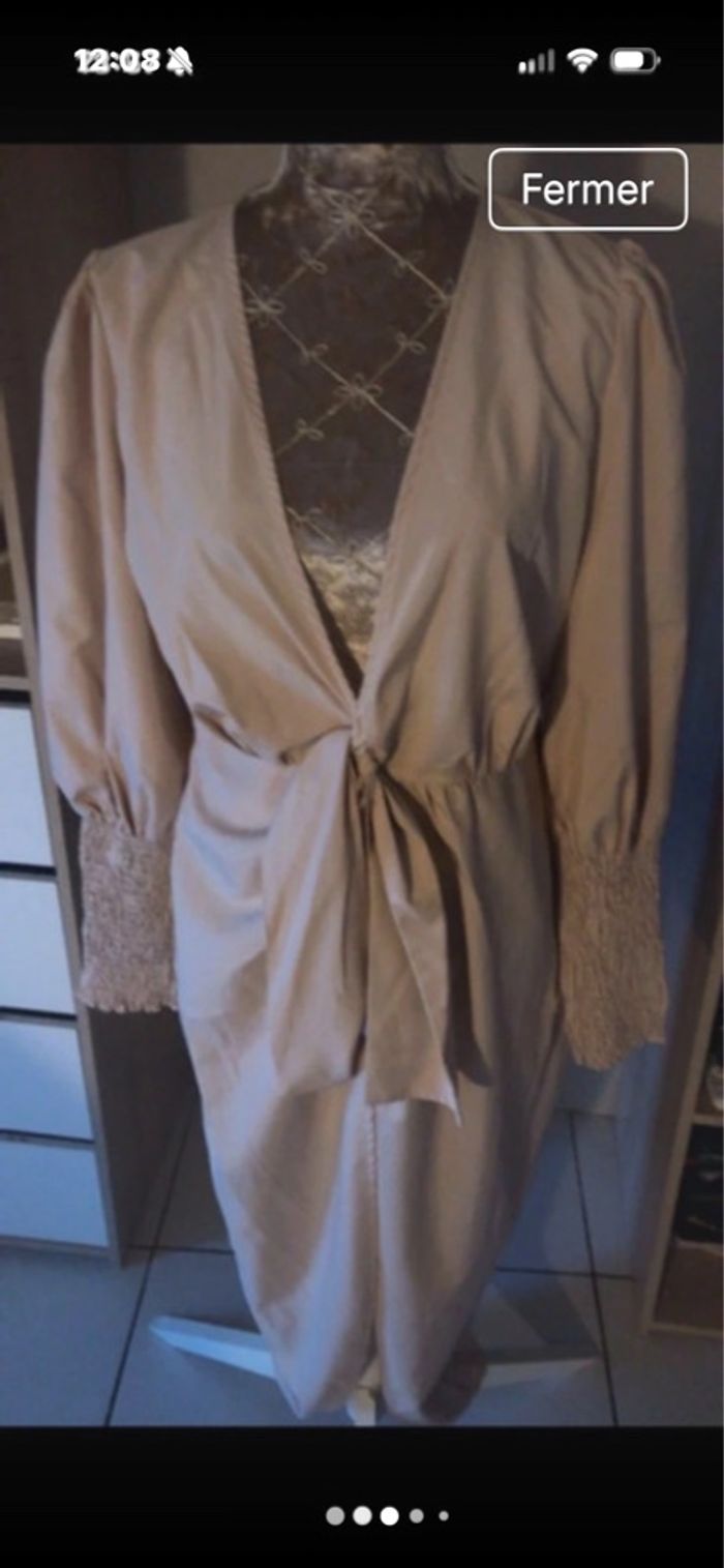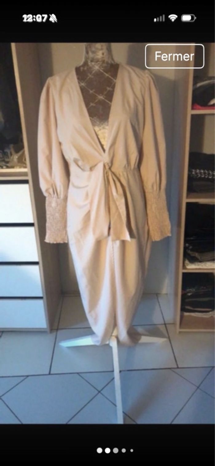 Robe longue beige élégante de la marque PrettyLittleThing.