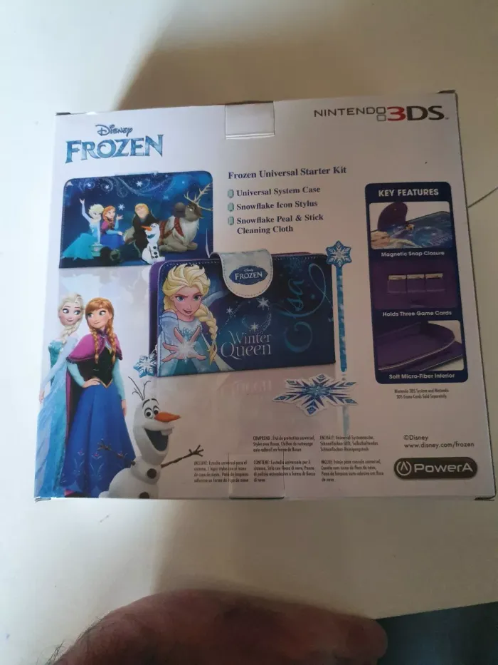 🎁 Pochettes Reine des Neiges + stylet assorti – neuves , sous blister , sous licence officielle Nintendo / Disney ! 5 de dispo 📦 Détails : – Thème : Elsa / La Reine des Neiges – Marque : Nintendo – Contenu : 1 pochette + 1 stylet – Fermeture zippée, format compact – Compatibles 3DS mais aussi utilisables pour maquillage, cartes Pokémon, téléphone, crayons, etc. – 10 pochettes disponibles – Vente en lot ou à l'unité possible 💡 Utilisations multiples : – Cadeau d'anniversaire ou lot concours – Pochette surprise – Goodie événementiel – Dragées mariage / baptême – Idée EVJF / EVG – Petit accessoire pour encourager les ventes compatible avec une Nintendo 3DS XL. Sur l’emballage, dans la section “WORKS WITH”, il est indiqué qu’il fonctionne avec : new Nintendo 3DS XL new Nintendo 3DS Nintendo 3DS XL Nintendo 3DS