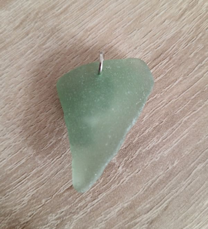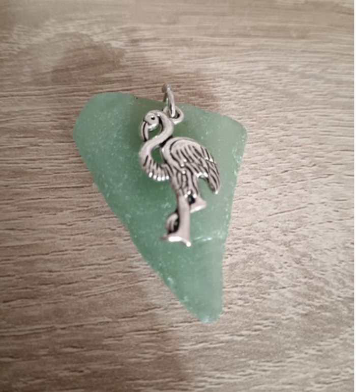 Pendentif fabriqué avec un morceau de verre poli et un breloque flamand Hauteur 4cm Longueur 3cm
