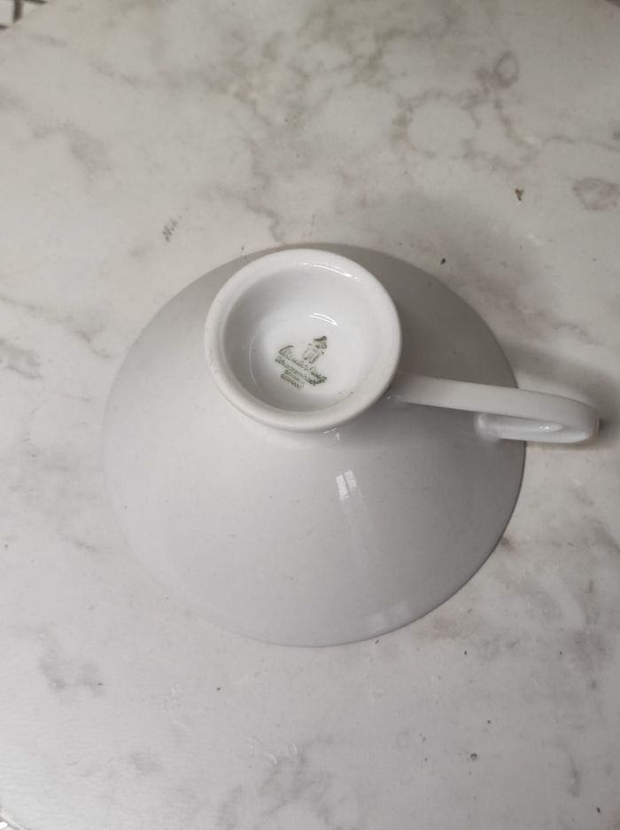La couleur du bords de la sous tasse peut-être légèrement effacer a quelques endroits cependant ils sont en parfait état, ni fêle ou ebruchures ( trace d'usage du temps )
