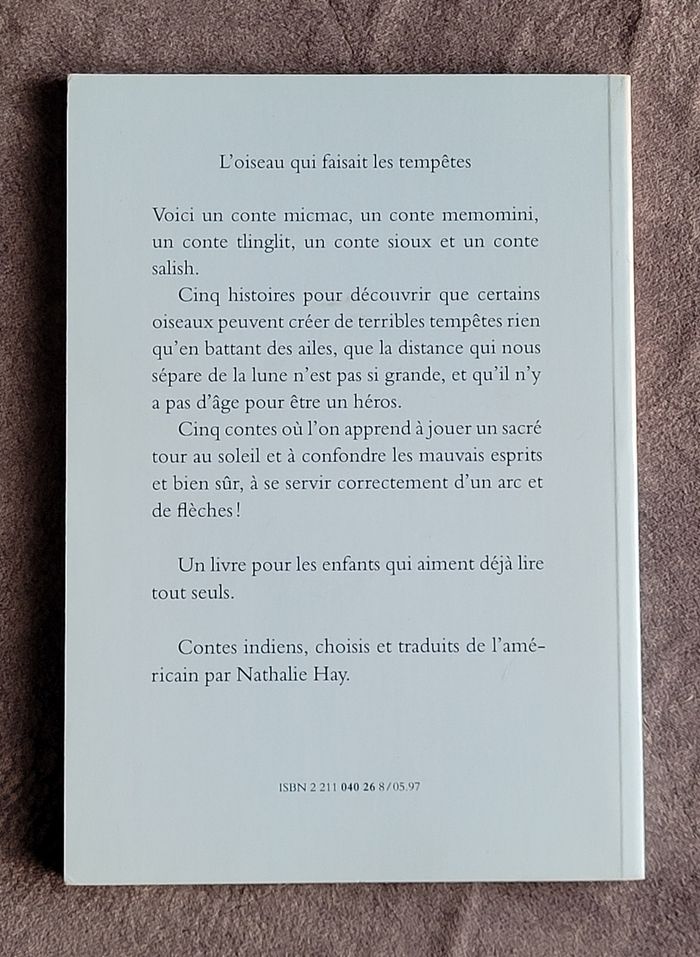 Bonjour, Je vends ce livre nommé - Contes Indiens D'Amérique Du Nord L'Oiseau Qui Faisait Les Tempêtes Nathalie Hay - en très bon état. Si vous rechercher un livre ou un acteur en particulier et pour gagner du temps, n'hésitez pas à me le demander, je vous répondrais dès que possible 😇 Veuillez vous abonner pour recevoir toutes les nouveautés Pour autres infos n'hésitez pas à me contacter. ***** Merci de votre visite *****