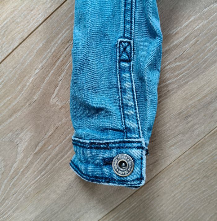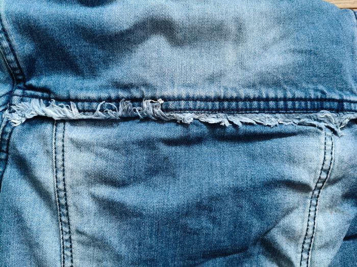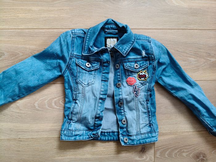 Veste en jean effet délavé avec 3 écussons devant. #sarahzajacfille7a #szjede
