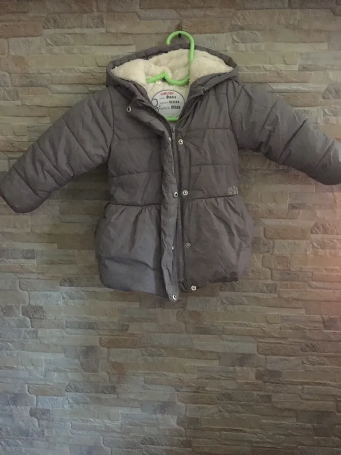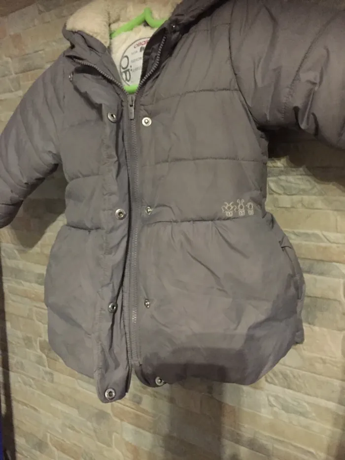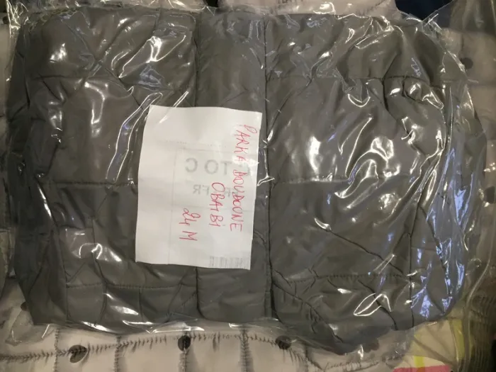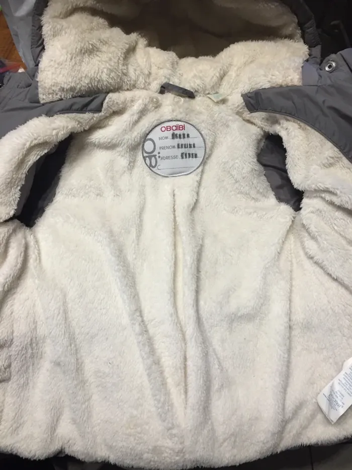 Doudoune grise à capuche Obaibi 24M, doublure fourrée et garnissage 100% polyester, extérieur 100% polyamide - NEUF