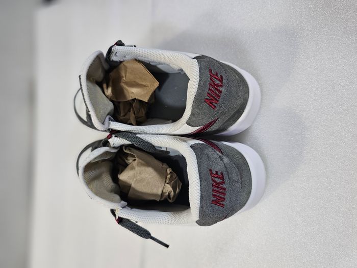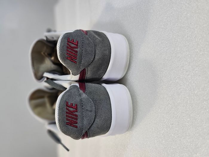 Baskets Nike SB au style skate, confortables et robustes, idéales pour un usage quotidien. Coloris gris avec empiècements blancs et Swoosh bordeaux. Vendu sans boîte ✔️ Modèle authentique (étiquette intérieure visible sur les photos) ✔️ Daim et toile résistants ✔️ Semelle épaisse Nike SB offrant un bon amorti ✔️ Lacets gris ✔️ Logo Nike brodé à l’arrière Taille : 42,5 EU (US 8.5 / UK 7.5)