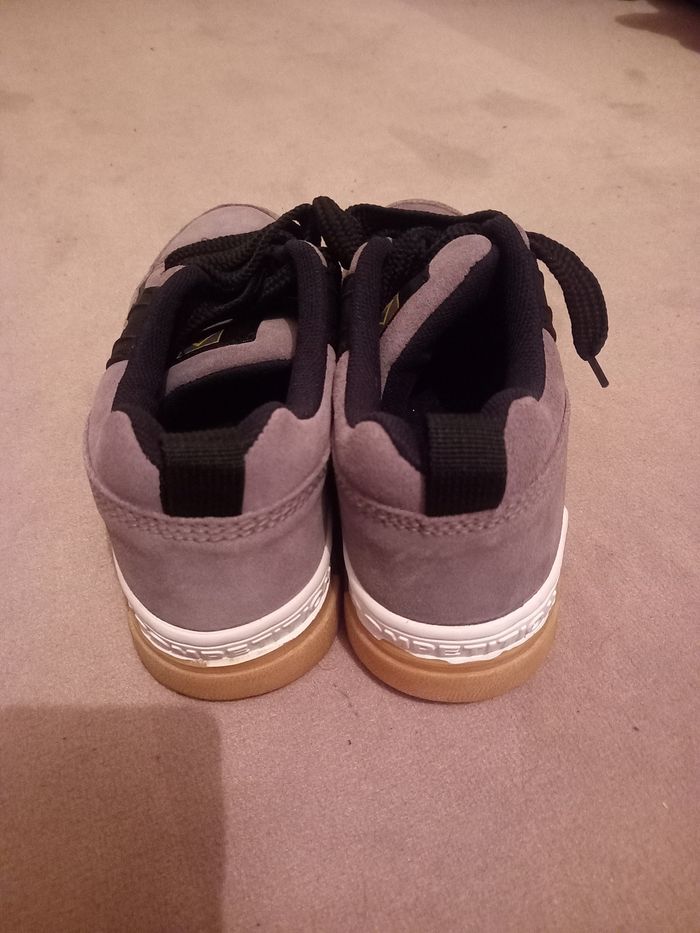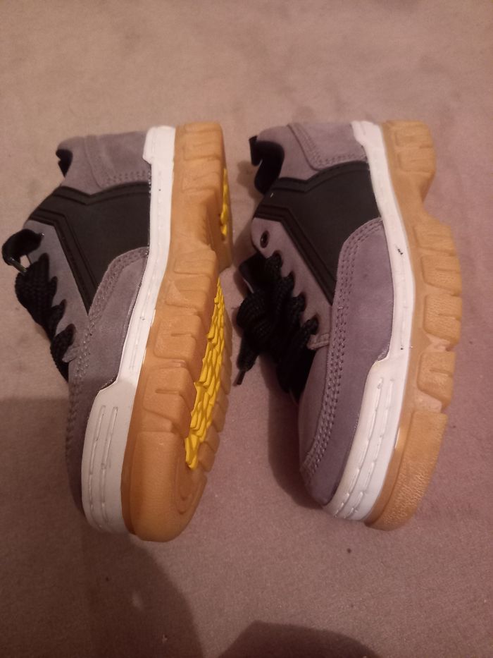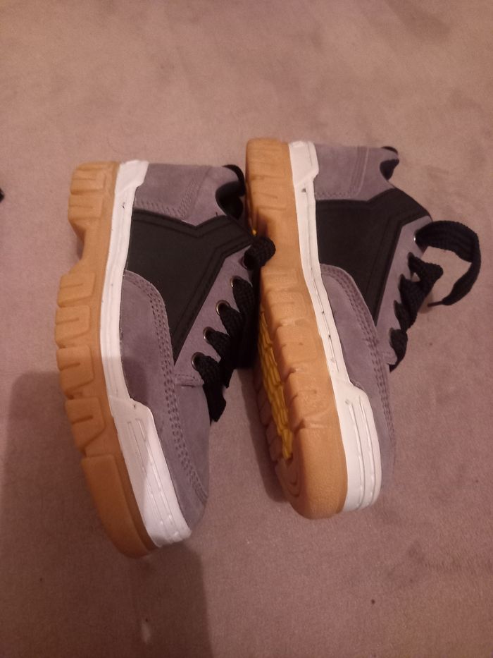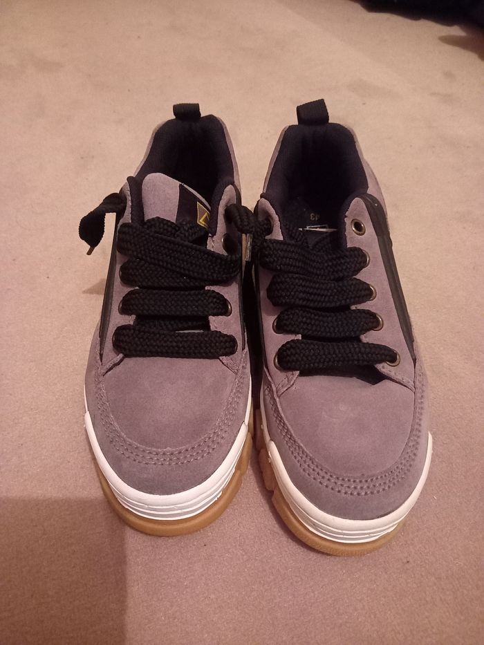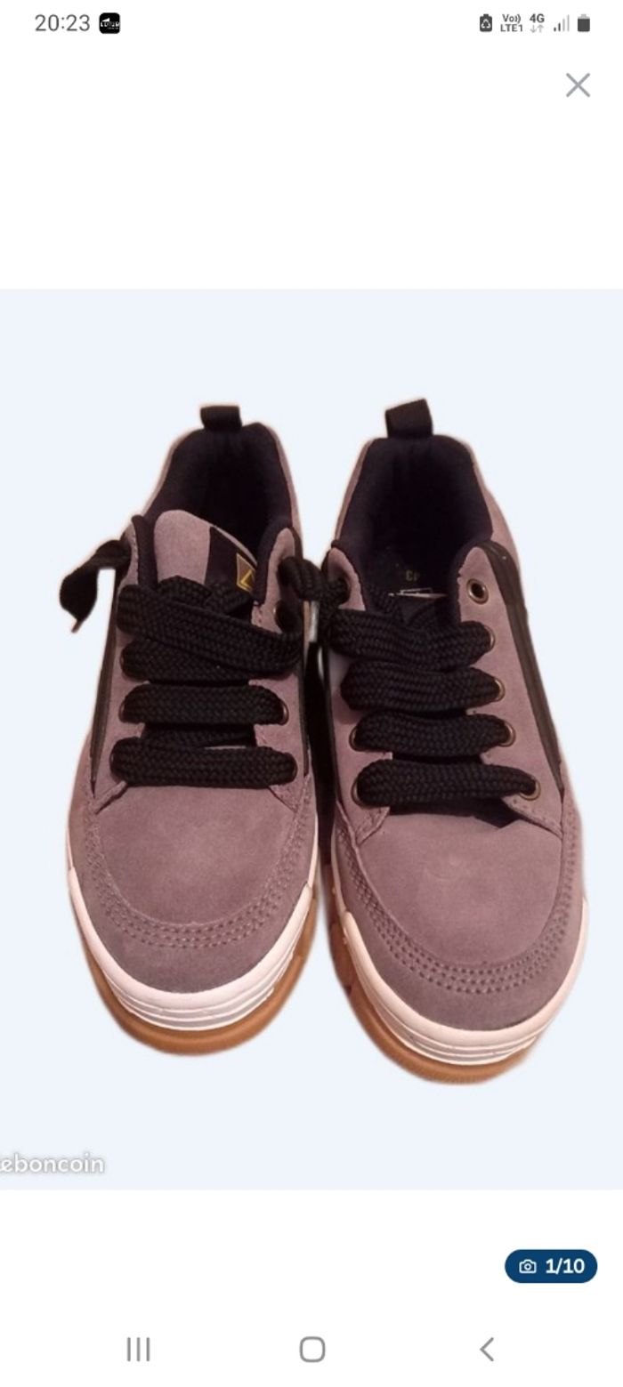 Chaussures neuves t.43 grises et noires, jolis larges lacets noirs