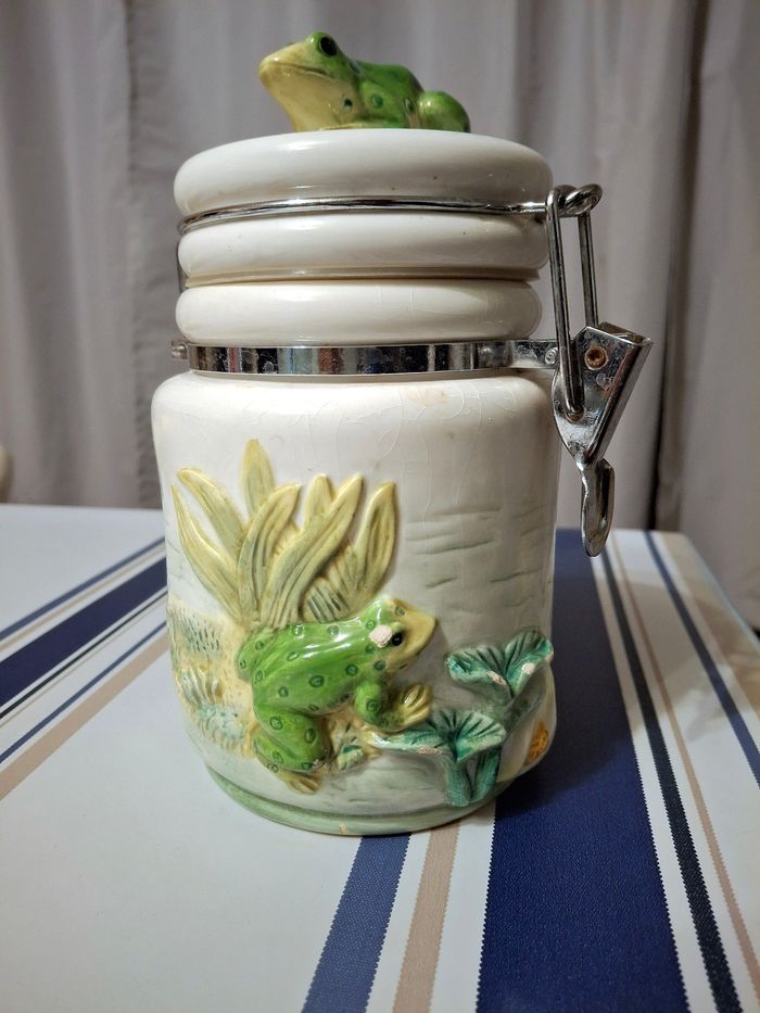 Pot de conservation, motif à reliefs grenouilles