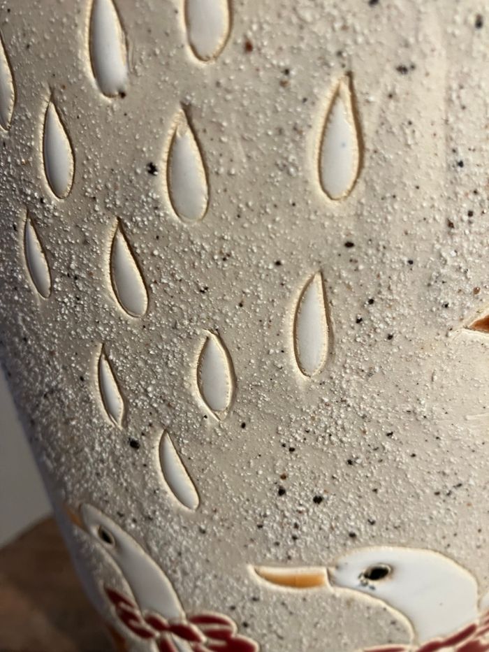 Beau vase signé-design scandinave-Motifs en relief - photo numéro 3