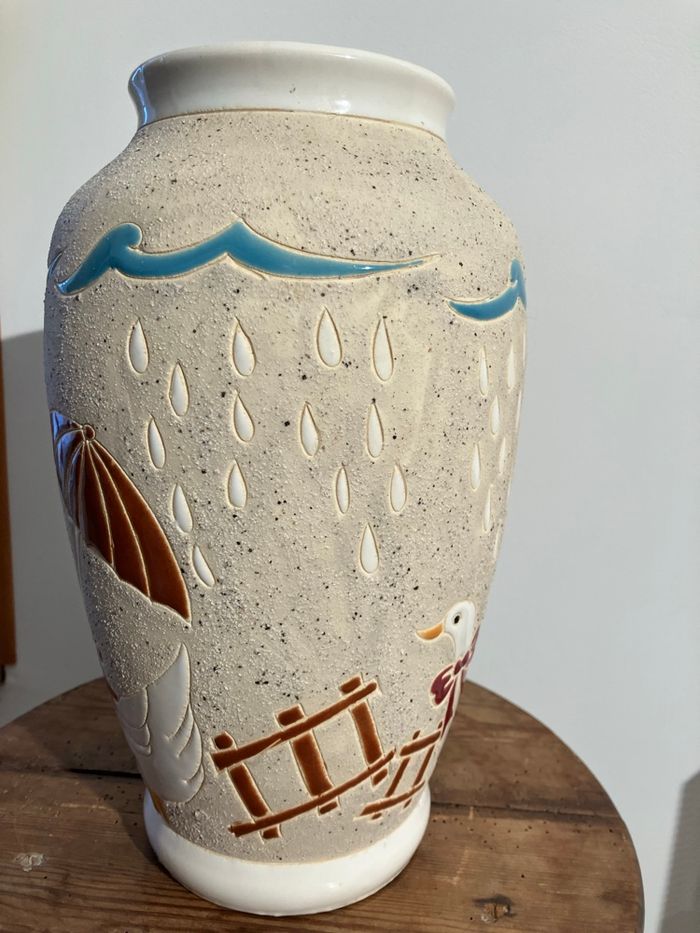 Beau vase signé-design scandinave-Motifs en relief - photo numéro 1