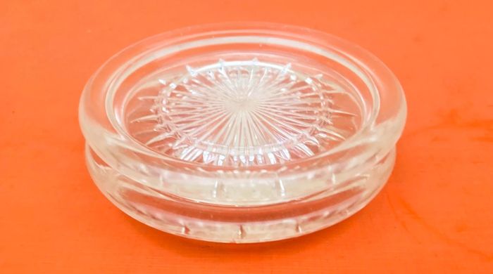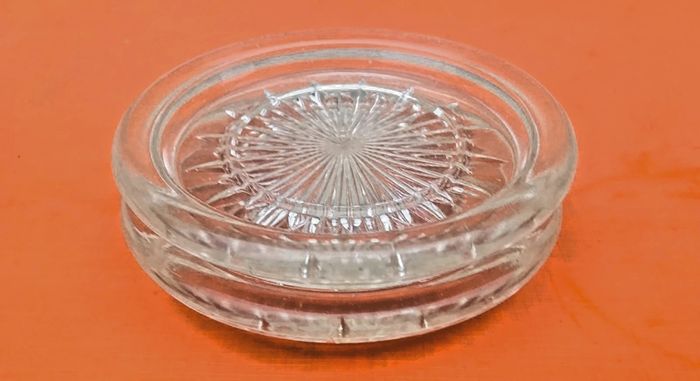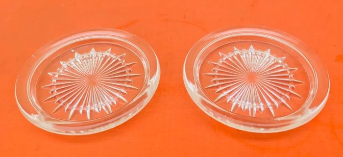 Années 1930 Paire de dessous Bouteille / Carafe Verre taillé transparent Diamètre : 138mm Hauteur : 20mm Poids total : 670grs