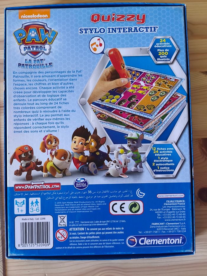 Je vends ce stylo interactif Quizzy de la Pat' Patrouille.