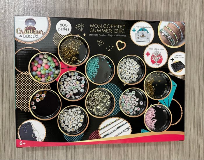 Coffret créateur de bijoux inclus, 800 perles + trois sacs cadeaux + un arbre à bijoux + un bac attends