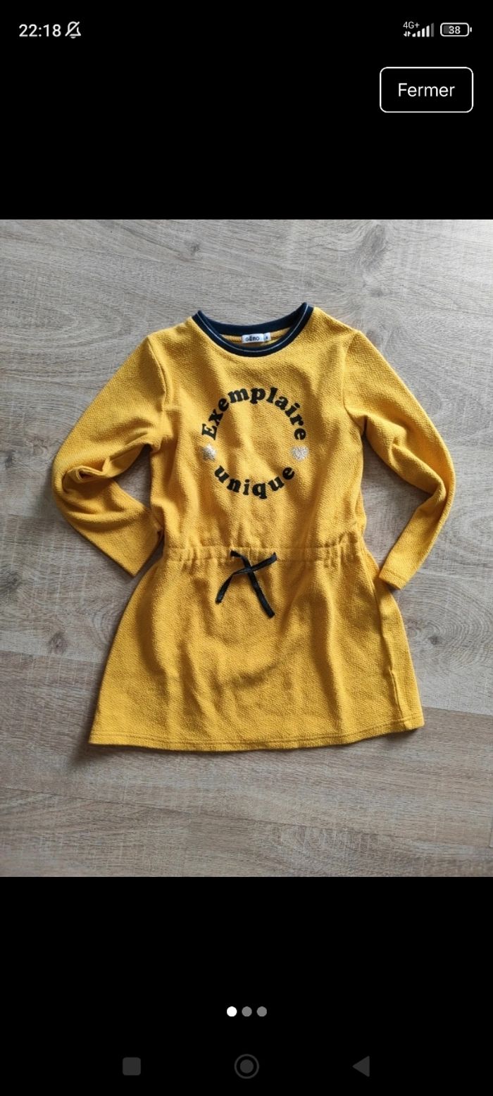 Robe neuve jaune imprimé exemplaire unique Gémo 8 ans