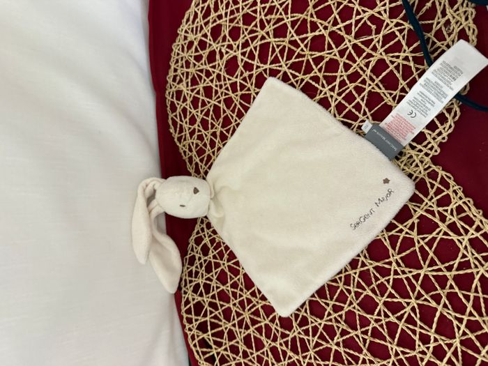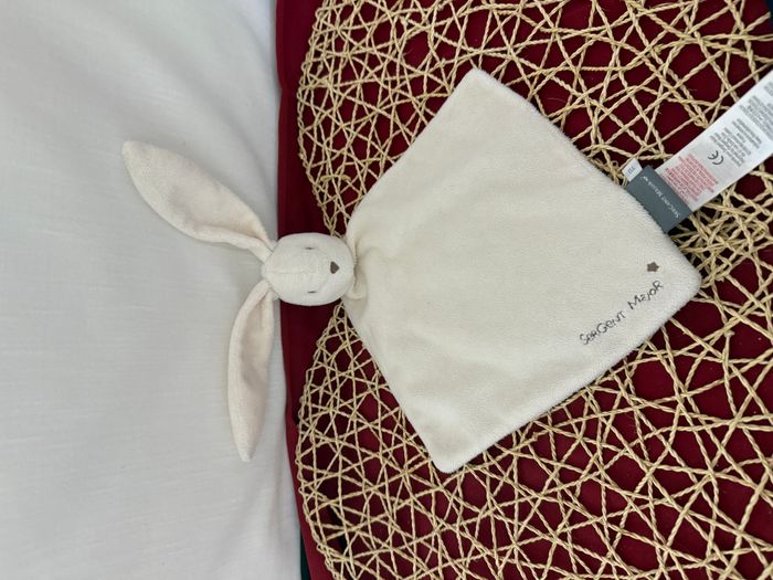 DOUDOU LAPIN BLANC CREME ECRU SERGENT MAJOR PLAT LOSANGE - photo numéro 4