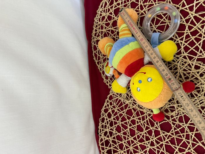 Doudou peluche grelot papillon multicolore hochet Pommette