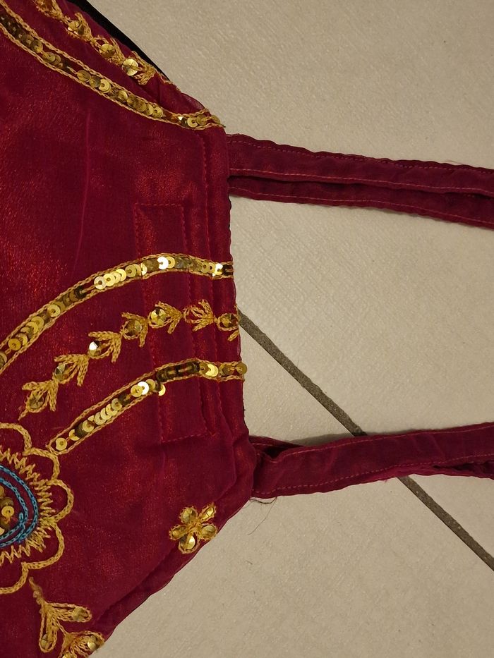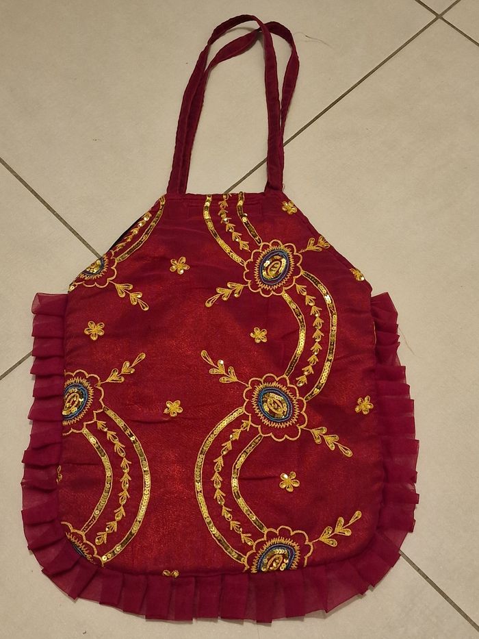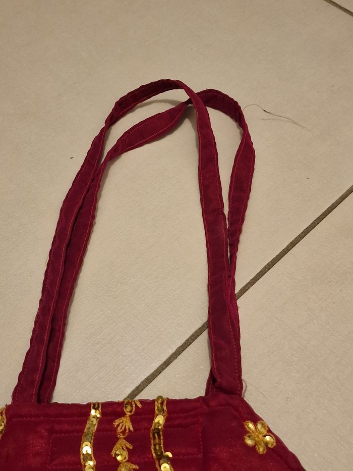 Je vends ce magnifique sac à main / pochette de style oriental (inspiration indienne ou maghrébine), d'une superbe couleur bordeaux / prune avec des reflets satinés.