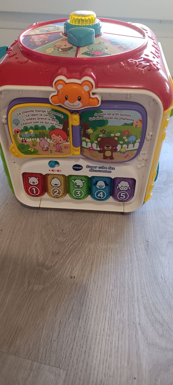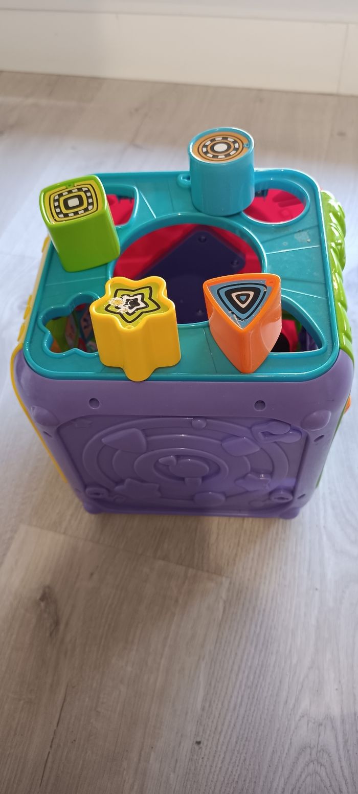 ÂGE : de 9 à 36 mois, un cube multi-activités parlant et musical, avec 5 faces de jeu dont 2 faces électroniques