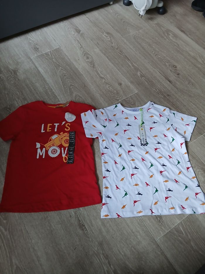 Lot de 2 tee shirts neufs 8 ans. Garçon. Un à motifs dinosaures et un autre à motifs véhicule. Un marque la fabrique des garçons et l’autre npo #lotde2teeshirts8ans #lotdeteeshirtgarcon8ans
