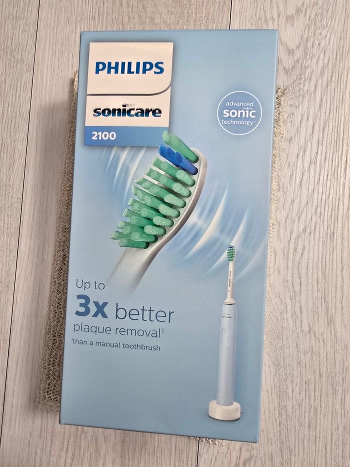 Brosse à dents électrique Philips Sonicare 2100 avec technologie sonique avancée pour éliminer efficacement la plaque dentaire et améliorer la santé des gencives. Design blanc élégant, facile à utiliser et idéale pour l’hygiène bucco-dentaire au quotidien.
