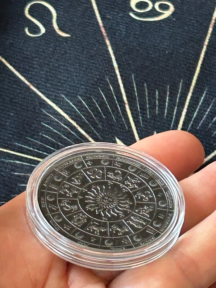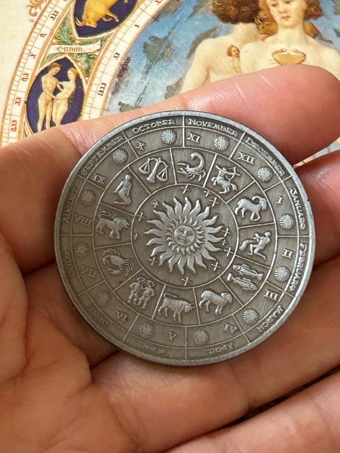 Je propose à la vente une magnifique pièce de collection, ou porte bonheur, qui représente avec finesse les douze signes du zodiaque.