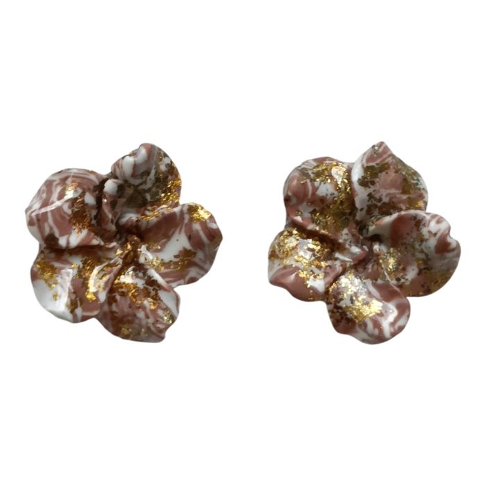 Le bouton de droite : une rose plus épanouie dans des tons rose , blanc avec des reflets dorés, donnant un aspect vintage pétales texturés et légèrement irréguliers pour un effet naturel.