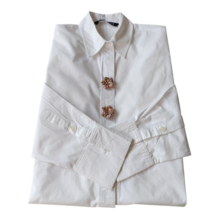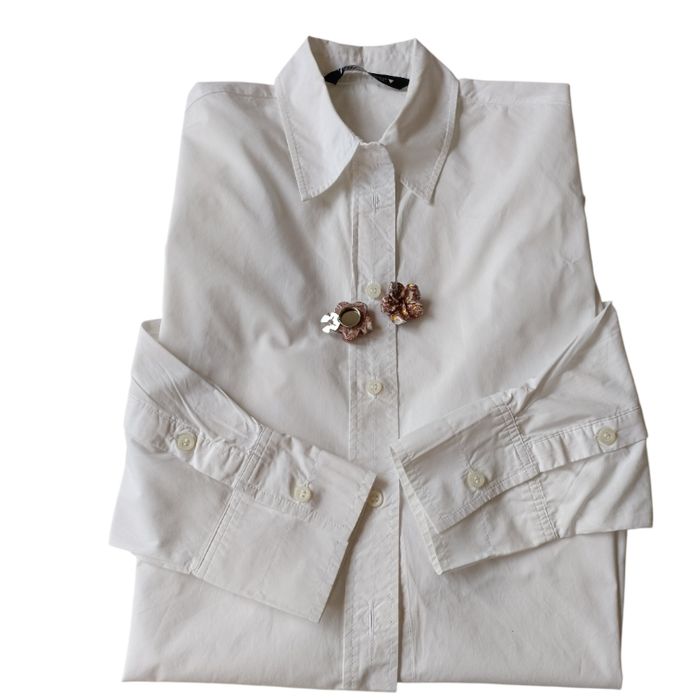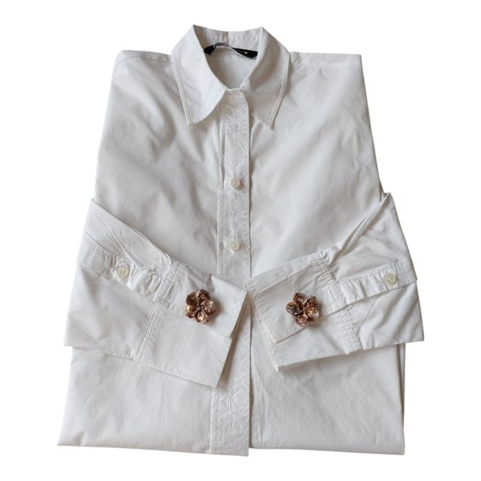 sur la patte de boutonnage, sont posés deux petits boutons décoratifs faits main en pâte polymère . Ces boutons représentent des fleurs de rose très réalistes :