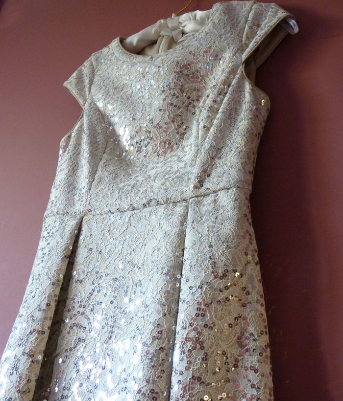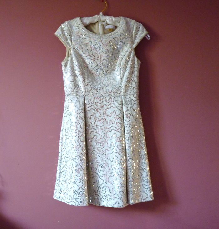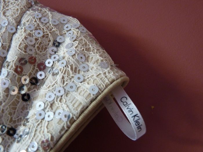 robe femme calvin klein S 36 soirée paillettes fête beige TBE.