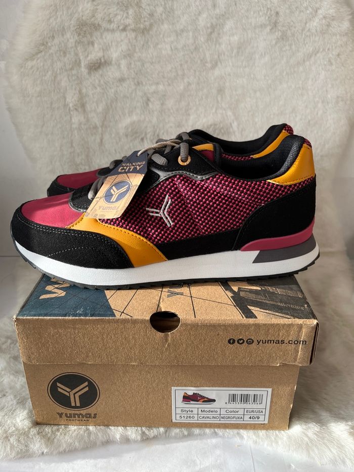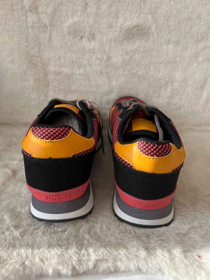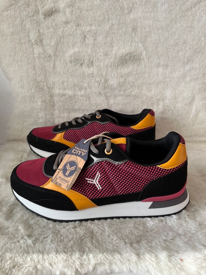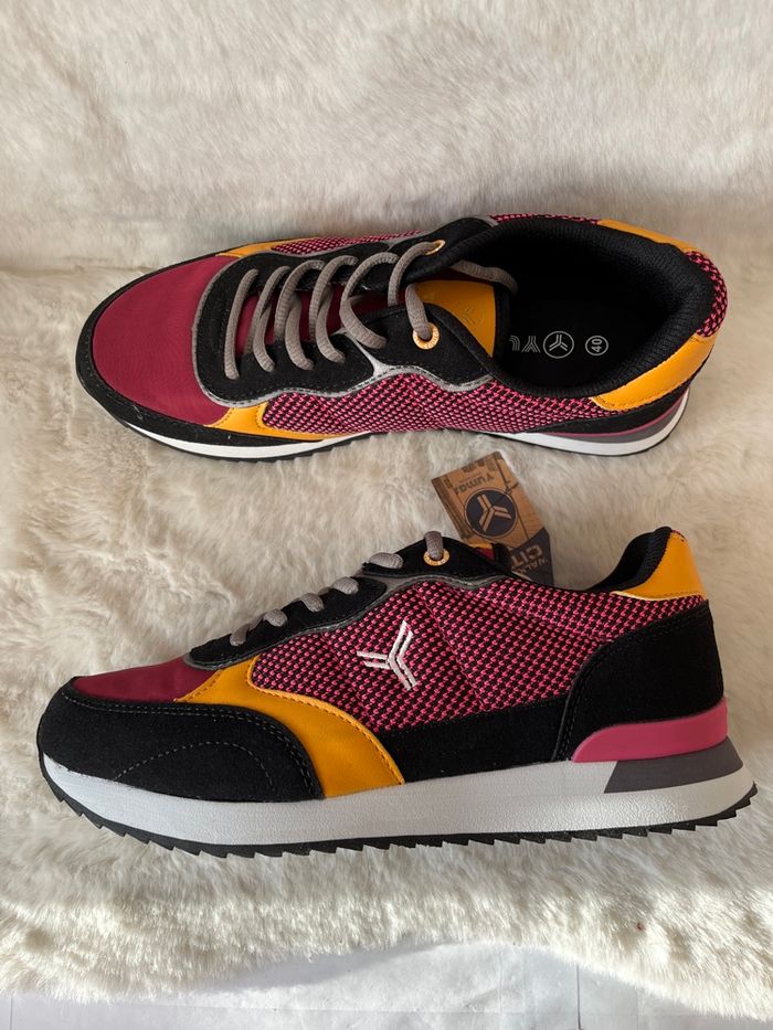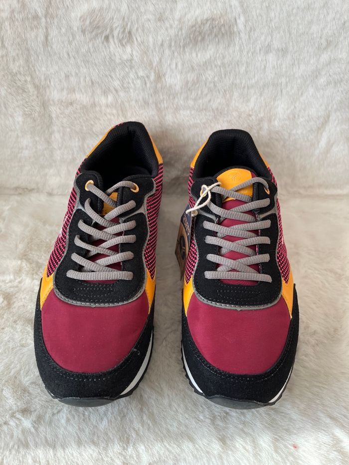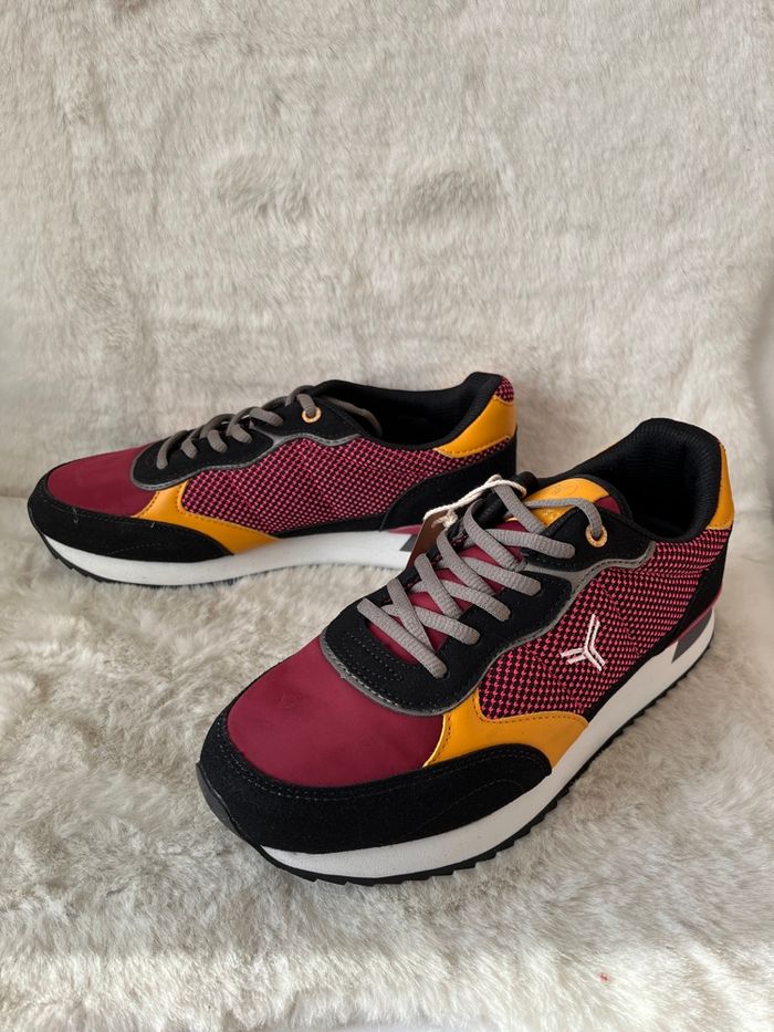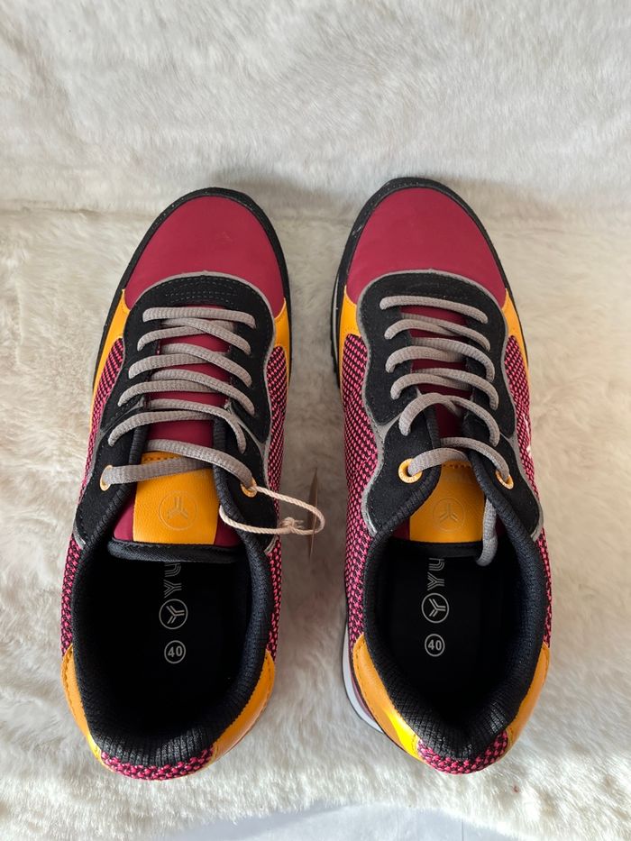 Baskets noires, bordeaux/ framboise et orange pointure 40
