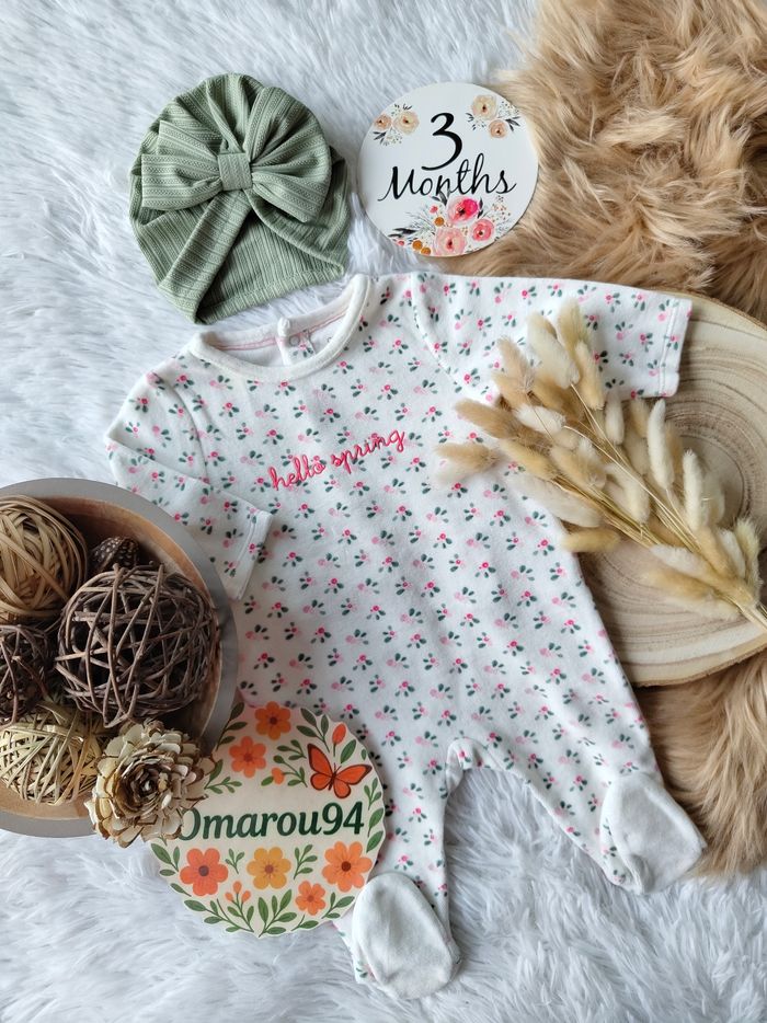 Pyjama fleurie velours et turban obaïbi fille 3 mois 🎀 - photo numéro 1
