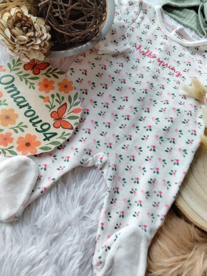 Pyjama fleurie velours et turban obaïbi fille 3 mois 🎀 - photo numéro 3