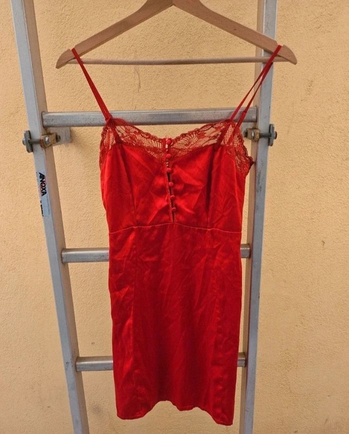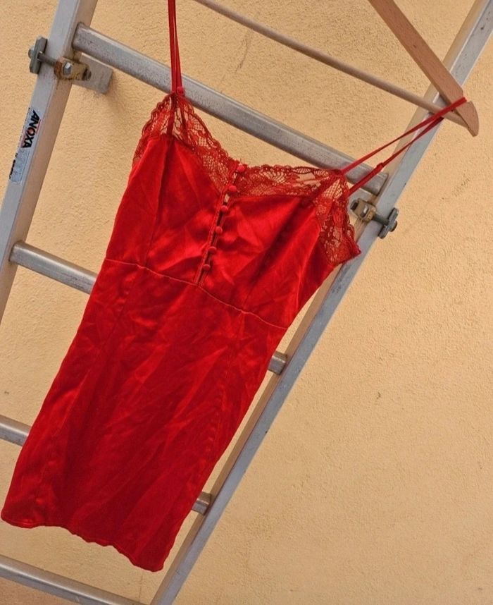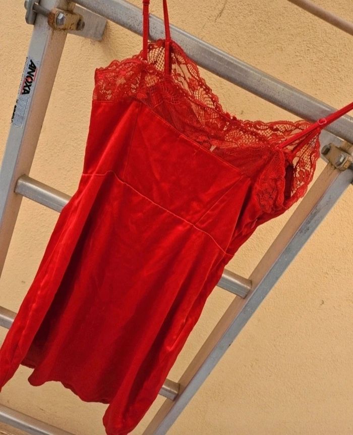 Nuisette rouge satine et dentelle